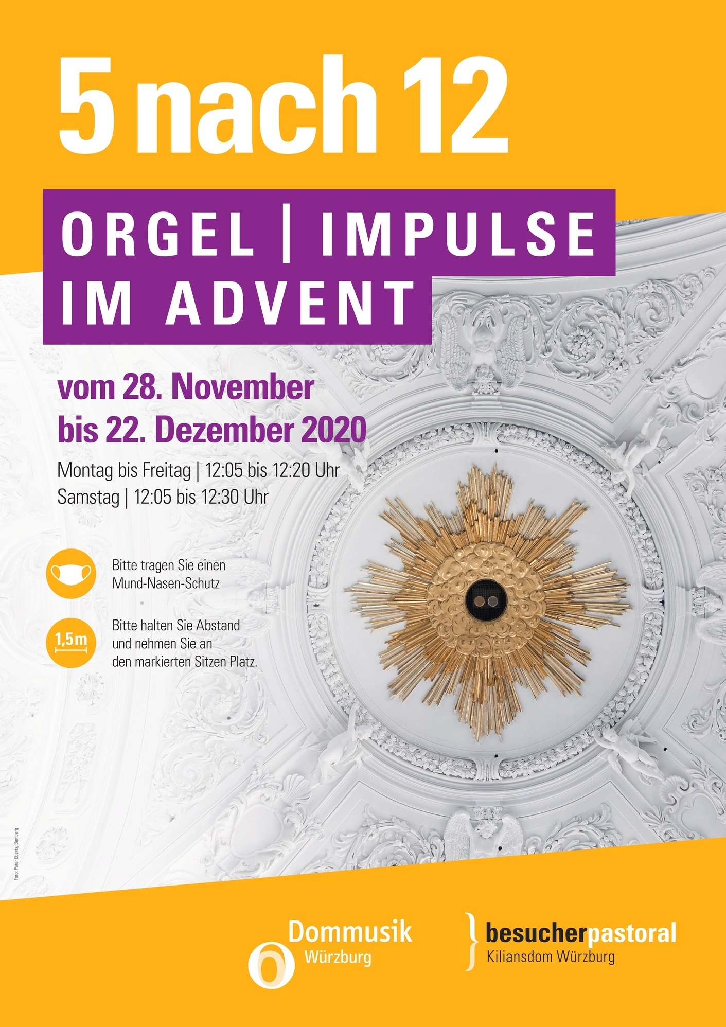 Endete sonst die Saison mit dem 31. Oktober, werden dieses Jahr erstmalig auch in der Adventszeit Orgelmusik und Gedanken zum Tag in der Mittagszeit im Würzburger Dom zu hören sein.