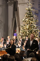 Auch die Solisten sorgten für Hörgenuss. Der schlanke Sopran der Sängerin Marie-Sophie Pollak kam besonders im Duett mit Kresimir Strazanak („Herr, dein Mitleid…“) herüber. Der Bassbariton, der über eine beachtliche Tiefe verfügt und in gut verständlichen Arien und mit Eleganz in den Rezitativen gefiel, und die warmen Melodienbögen der Altistin Ulrike Malotta, die unter anderem samtweich und innig das Wiegenlied für das Jesuskind intonierte („Schlafe, mein Liebster…“)zauberten Andacht und Weihnachtsglück in das Gotteshaus.