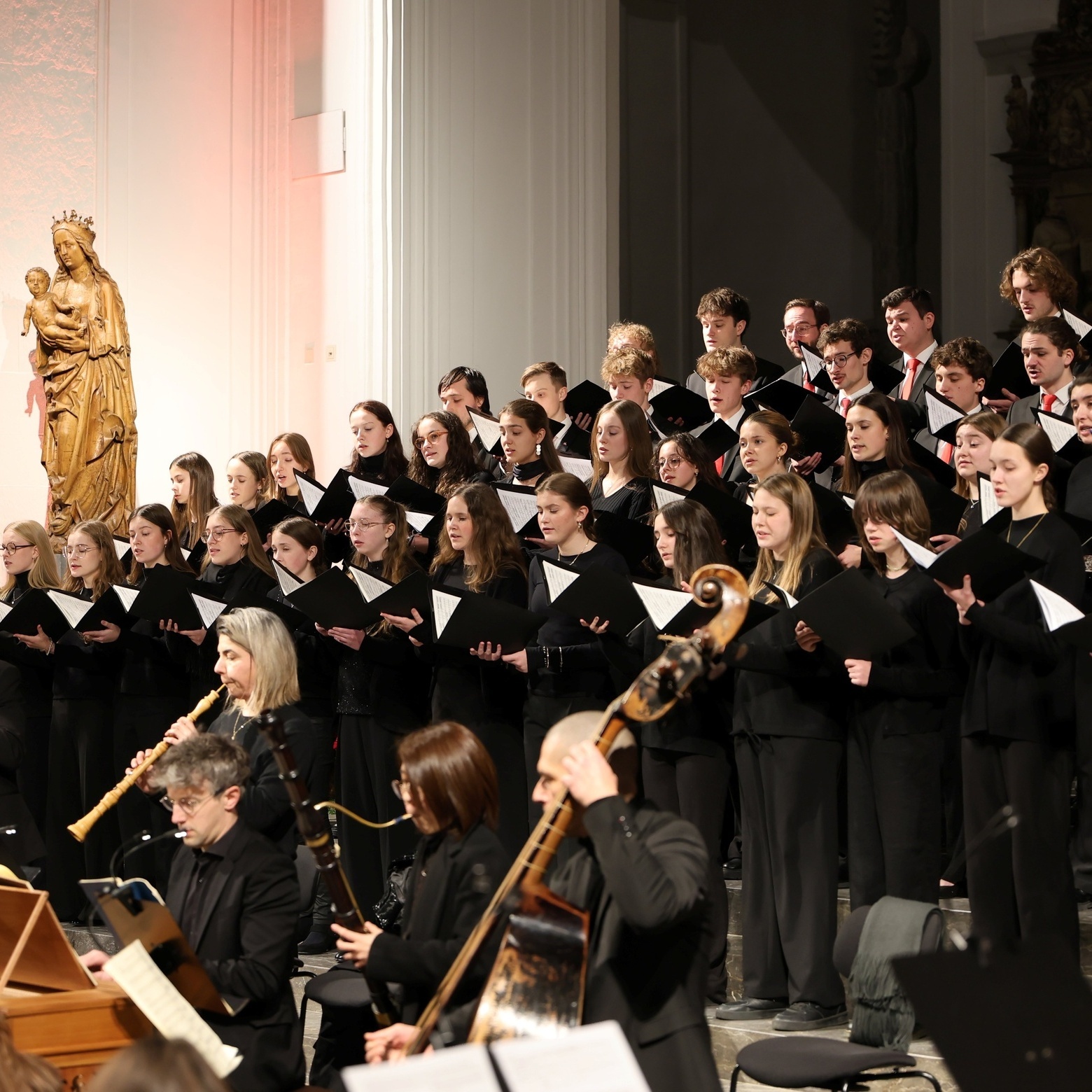 Zwei Chöre, zwei Orchester und zweieinhalb Stunden Musik: Bachs Matthäus-Passion ist der Mount Everest der Barockmusik. Und das nicht nur aufgrund der äußeren Dimensionen, sondern auch wegen ihrer gedanklichen Tiefe. Die Dialogstruktur des Textes inspirierte Bach zu einer doppelchörigen Komposition. Durch die Verdoppelung der Ensembles hat Bach eine Stereofonie geschaffen, die nicht nur klanglichen Reiz hat. Durch die gegenüberliegende Aufstellung im Altarraum und auf der Empore im Würzburger Dom singen sich die beiden Chöre zudem direkt an und können so in einen wirklichen Dialog miteinander treten.
