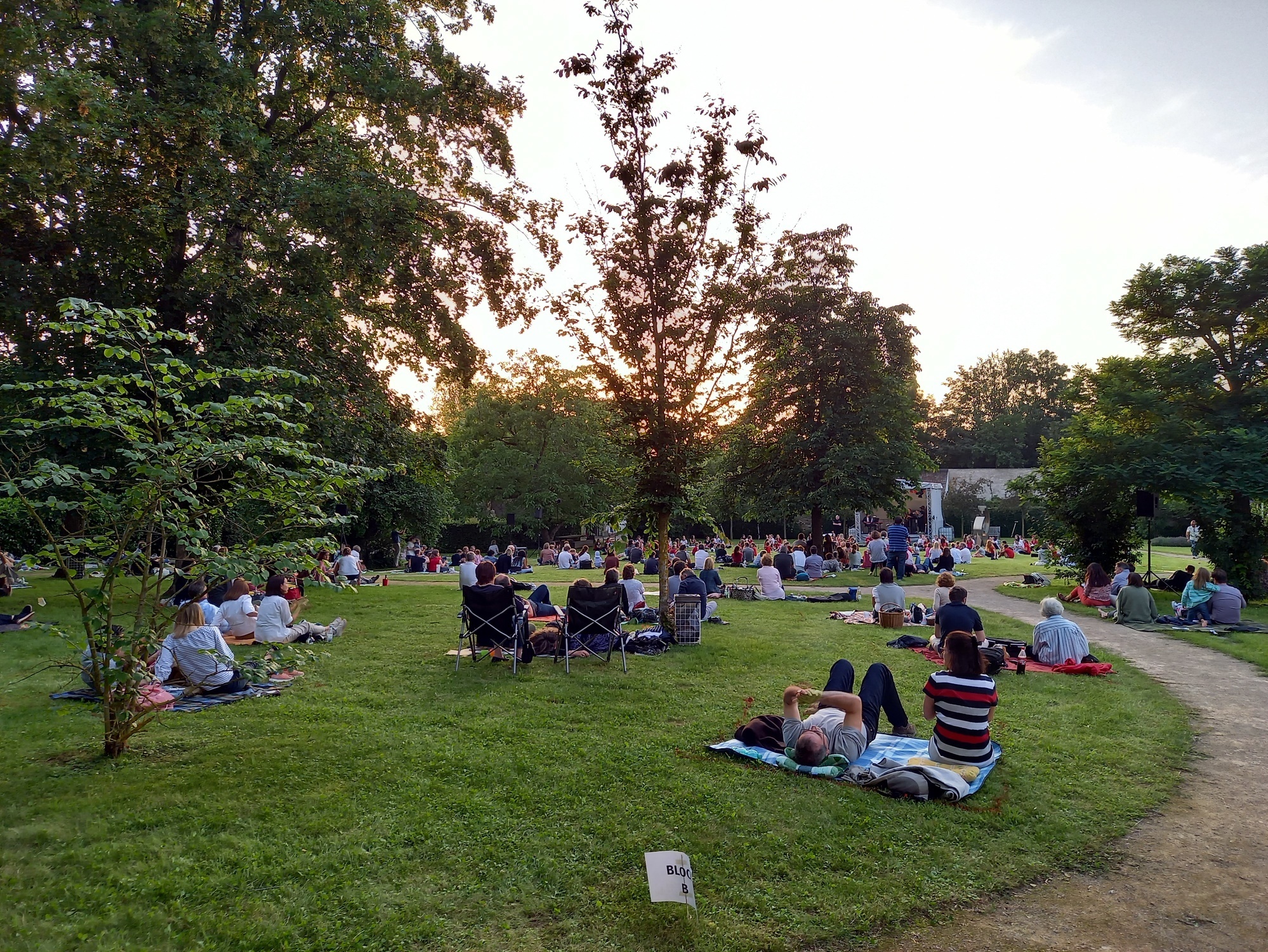 Die Mädchen der Mädchenkantorei und die Sänger der Domsingknaben sangen weit verstreut in bester Festival-Manier im Garten des Exerzitienhauses Himmelspforten schöne, stimmungsgeladene und schwungvolle Lieder. Dazu wurden sie begleitet vom Björn-Becker-Quintett, die zwischendurch mit jazzigen Nummern auch zum mitschwingen und tanzen einluden. Die Eltern und Angehörigen konnten der Musik bei einem gemütlichen Picknick auf ihrer Decke lauschen oder nebenbei auch noch die Getränke und Snacks des Exerzitienhauses genießen.