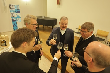 „Vom Domsingknaben zum Operntenor – alles ist möglich“, sagte Bischof Dr. Franz Jung in seinem Grußwort. Es sei schön, dass Bieber zum Ende seiner Karriere an den Ort des Anfangs zurückkomme, „hier in unseren wunderbaren Dom“. Biebers Laufbahn sei ein eindrücklicher Beleg für die hervorragende Ausbildung, die junge Menschen in der Dommusik genössen. „Eine Ausbildung, die Lust macht, sich weiterzuentwickeln und den Weg zum Profimusiker einzuschlagen.“ Im Besingen des Sieges Gottes über die Mächte der Finsternis – wie in Mendelssohns „Lobgesang“ – hätten die Menschen schon Anteil am Sieg des Lebens über den Tod. „Darin besteht das Trostreiche des Gesangs, der uns in eine neue Wirklichkeit versetzt.“ Nicht „Wächter der Nacht“ sollten die Christinnen und Christen sein, sondern „Wächter des neuen Morgens“ im Ansingen gegen die Dunkelheit, „auch im eigenen Herzen“, betonte der Bischof. „Das ist unsere Berufung, zu der uns unsere Dommusik auch heute wieder so mitreißend und aufmunternd eingeladen hat.“
