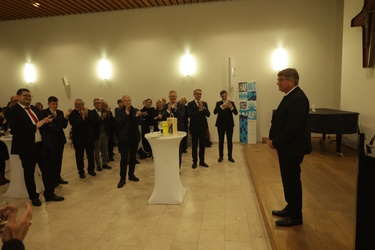 Dommusikvereinsvorsitzender Wagner dankte allen an der Vorbereitung und Umsetzung des Konzerts Beteiligten. Besonders hieß er Martin Hummel willkommen, Sohn des Komponisten Bertold Hummel, dessen 100. Geburtstag in diesem Jahr begangen wird. Mit der Aufführung von Psalm 150 aus „Der Schrein der Märtyrer“ sei die langjährige Verbundenheit der Dommusik zu dem Komponisten bekräftigt worden, „für den die Dommusik zahlreiche Kompositionen uraufführen durfte“.