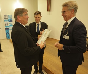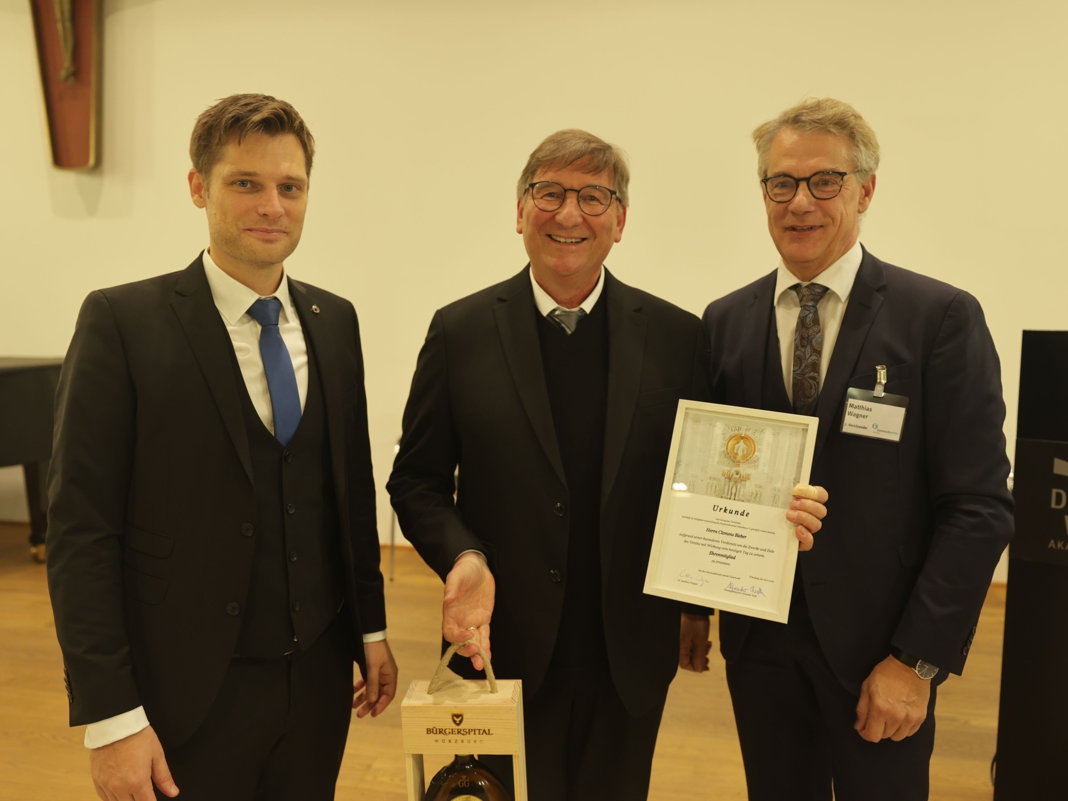 Zum Ehrenmitglied hat die Dommusik Würzburg und der Dommusikverein am Sonntag, 19. Oktober, den Tenor Clemens Bieber ernannt. Der international gefeierte Sänger war unter anderem Ensemblemitglied der Deutschen Oper Berlin, Solist bei den Bayreuther Festspielen und absolvierte unter anderem Gastspiele und Konzerte in Stockholm, Tokio, Peking und an der Metropolitan Opera in New York. Dr. Matthias Wagner, Vorsitzender des Dommusikvereins, und Domkapellmeister Alexander Rüth überreichten Bieber die Ehrung beim Empfang direkt im Anschluss an das Herbstkonzert „Lobgesang“, bei dem der Tenor den zentralen Part sang. „Mir wurde bei der Dommusik ein Senfkorn ins Herz gelegt“, erklärte der Geehrte. Seine musikalische Karriere verdanke er in wesentlichen Teilen der Dommusik. „Vergelts Gott“, sagte Bieber und dankte auch seiner Ehefrau, die ihn seit 40 Jahren begleite und unterstütze.